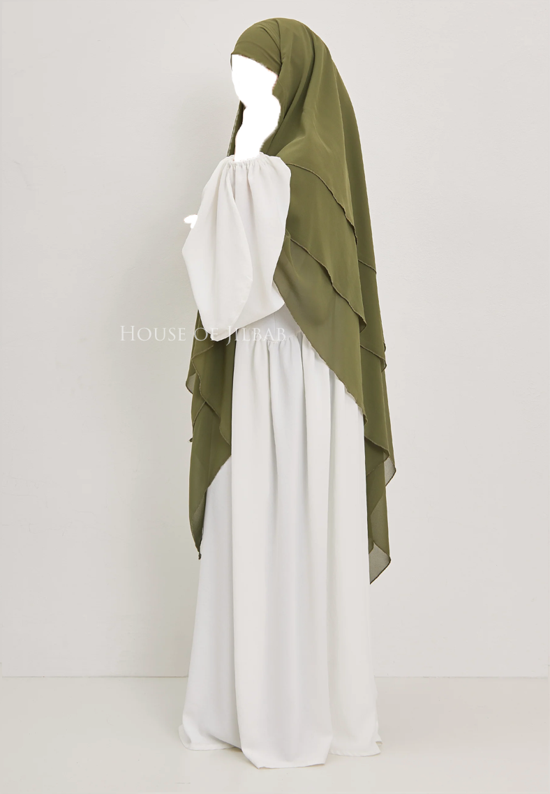 Our Three Layer Khimar is made from the flowly and light Muslin Fabric*.